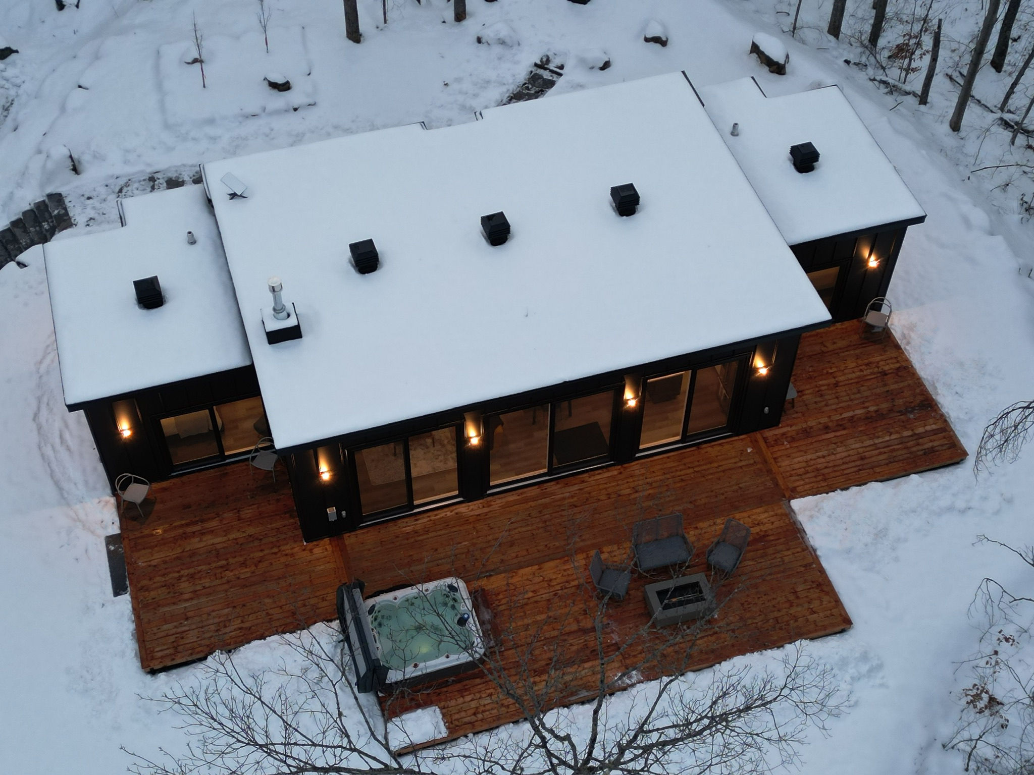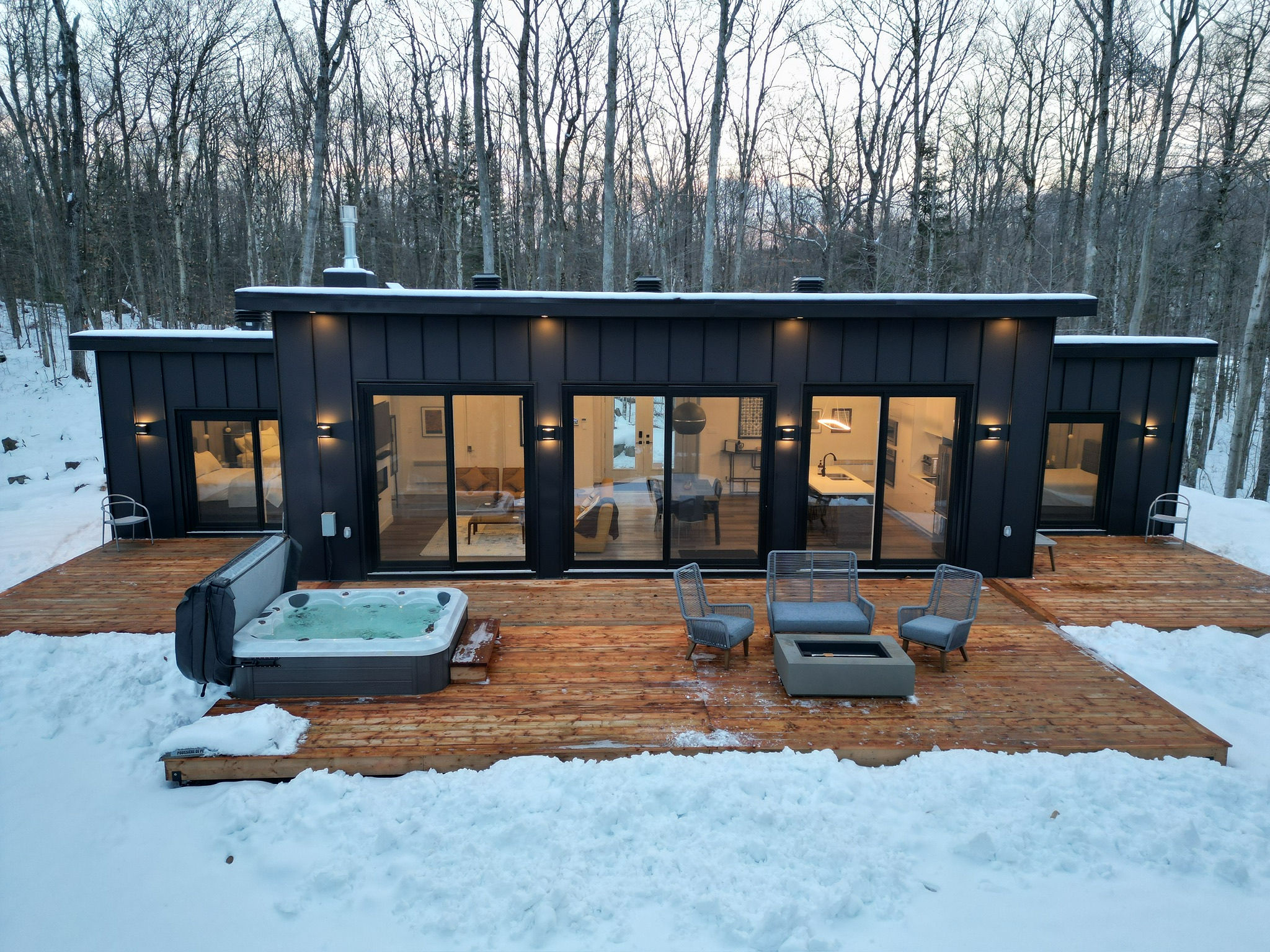 Thanks to a passive design, the atmosphere inside our cabin is always just right and the gas fireplace takes the edge off chilly northern nights. Stargazers will love the outdoor woodburning firepit, gas fireplace, and integrated spacious 7-person hot tub.
